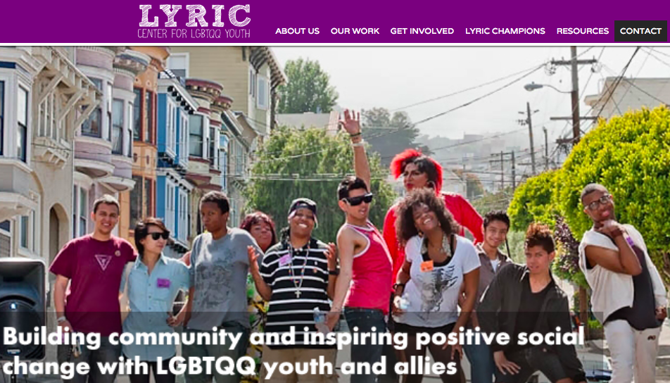 to build community and inspire positive social change through education enhancement, career trainings, health promotion, and leadership development with lesbian, gay, bisexual, transgender, queer, and questioning (LGBTQQ) youth, their families, and allies of all races, classes, genders, and abilities. LYRIC’s vision is a diverse society where LGBTQQ youth are embraced for who they are and encouraged to be who they want to be. By working towards social justice and supporting young leaders, their families and allies, LYRIC is building a world that honors, respects and appreciates LGBTQQ youth and their contributions.